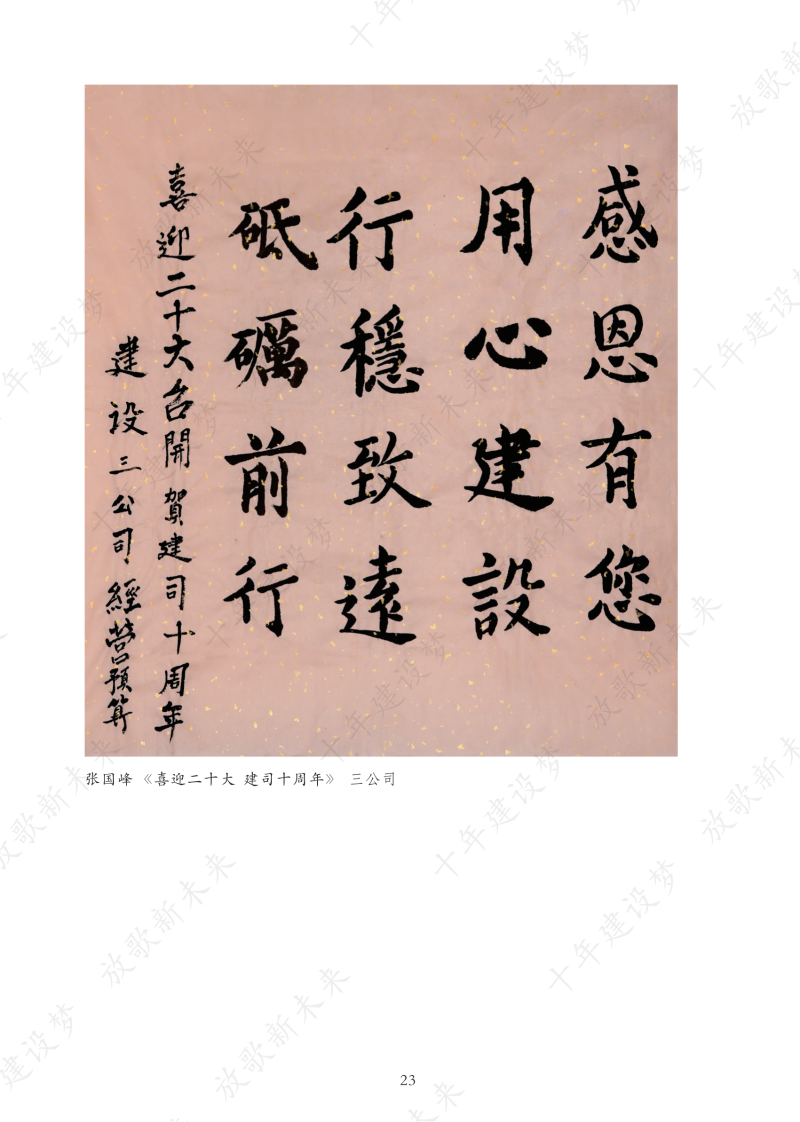 為更好的聚焦企業(yè)發(fā)展變遷,深挖企業(yè)精神內(nèi)涵,引導(dǎo)全司職工從企業(yè)十年發(fā)展的歷程軌跡中汲取力量,以強(qiáng)烈的責(zé)任感和飽滿的精神狀態(tài)投入到各項(xiàng)工作中。根據(jù)公司黨委關(guān)于《慶祝建司十周年主題宣傳及系列活動實(shí)施方案》的通知要求,建設(shè)公司工會組織開展了慶祝建司十周年“征文活動”、“第二屆職工藝術(shù)作品展”等活動。此次系列活動共收到140余名職工的168件作品,包括征文、書法、油畫、國畫、攝影、十字繡、剪紙、小制作等十多個(gè)種類。最終經(jīng)過各基層工會主席評選確定入冊作品155件,其中攝影作品38件、書法作品38件,美術(shù)作品26件,手工作品17件,征文作品36篇。這些作品創(chuàng)意新穎,主題突出,內(nèi)容豐富,充分體現(xiàn)了企業(yè)精神譜系和廣大職工的精神面貌,從不同角度展示了全司廣大職工的聰明智慧和藝術(shù)才華,反映了職工們心系企業(yè)、愛崗敬業(yè)、構(gòu)建和諧社會的熾熱情懷。