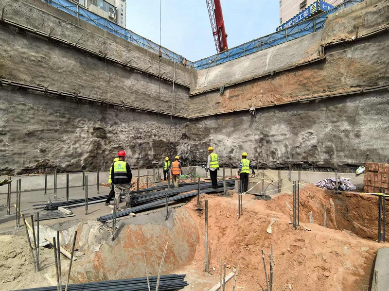 晝夜鏖戰(zhàn)善攻堅(jiān)。面對(duì)復(fù)雜地質(zhì)條件和狹小的施工場地,技術(shù)人員實(shí)時(shí)監(jiān)測鉆孔深度、注漿壓力等參數(shù),青年突擊隊(duì)以“狹路相逢勇者勝”的斗志,精心準(zhǔn)備、駐守一線、精準(zhǔn)發(fā)力,通宵進(jìn)行抗拔力檢測,以“完成一段、驗(yàn)收一段”的節(jié)奏,確保主體結(jié)構(gòu)抗浮安全萬無一失,在方寸之地闖出攻堅(jiān)新路。