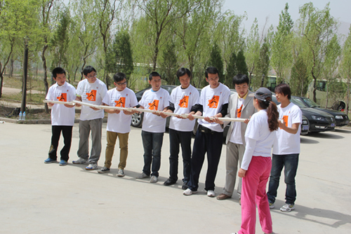 在教練簡(jiǎn)短的介紹之后,便開始了讓大家好奇和期待的訓(xùn)練。為保證活動(dòng)的安全進(jìn)行,此次活動(dòng)的所有項(xiàng)目均在教練的指導(dǎo)下在地面有序開展?;顒?dòng)項(xiàng)目包括高空斷橋、背摔,動(dòng)感顛球,珠行萬里,多人跳繩等活動(dòng)。其中,“高空斷橋”時(shí)每位成員都必須戰(zhàn)勝自我,在同伴的鼓舞、指引下釋放潛能;“背摔”告訴大家建立換位思考的意識(shí),站在對(duì)方的角度思考問題,架起相互之間理解的橋梁。這一個(gè)個(gè)充滿趣味的活動(dòng),就像戰(zhàn)場(chǎng)后勤供給的模擬比賽,中間盡管出現(xiàn)了各種或令人捧腹,或令人急躁的麻煩,但結(jié)果卻讓大家很感動(dòng),很滿足??粗蠹夷樕纤烈饬魈实男θ莺秃顾?,大家都真實(shí)地感受到自己身在這樣一個(gè)集體是多么幸福的一件事。