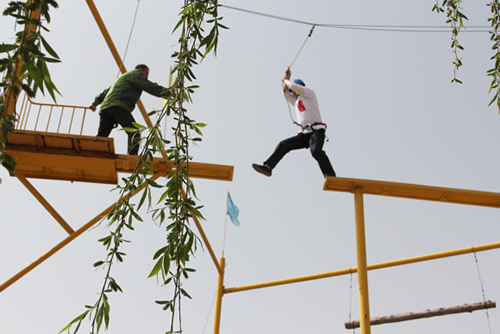 表彰大會(huì)結(jié)束后,素質(zhì)拓展訓(xùn)練活動(dòng)正式啟動(dòng)“開營(yíng)”儀式。初到訓(xùn)練場(chǎng)地,頓覺天朗氣清,清晨的濃霧還游離在濃綠色的山上,風(fēng)過便是一陣涼爽。團(tuán)員們?cè)谶@樣的環(huán)境下對(duì)訓(xùn)練也頗增了幾分信心。開班前,教練讓大家進(jìn)行了“愛的鼓勵(lì)”等一系列的歡快活動(dòng),旨在打破人與人之間的隔閡,建立相互信任的基礎(chǔ),營(yíng)造團(tuán)隊(duì)快樂和諧的氛圍。