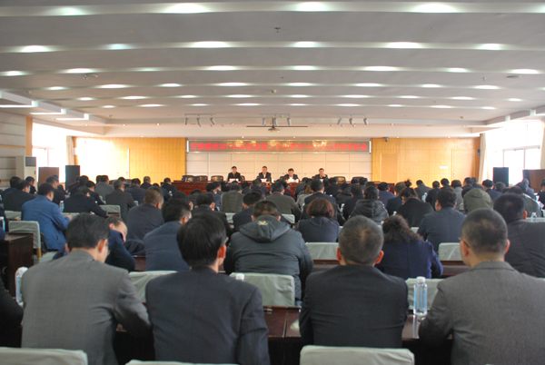 甘肅建投副總經(jīng)理邊海河、孟康榮宣讀表彰決定, 總工程師馮力強(qiáng)主持會(huì)議。
