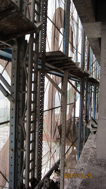 高層施工的外腳手架,我們目前普遍采用分段型鋼懸挑腳手架,人工搭設(shè)施工。在搭設(shè)及拆除過程中,存在著很大的安全隱患。而在先進(jìn)地區(qū)已普遍使用“附著式升降腳手架技術(shù)”,此技術(shù)是高層施工腳手架第一次實(shí)現(xiàn)了機(jī)械化施工。高層施工升降平臺架體全部在地面拼裝,分組吊裝,減少了高處搭設(shè)作業(yè)。整體吊裝完成后,接通電控系統(tǒng)即可進(jìn)行整體升降。該防護(hù)架具有防護(hù)嚴(yán)密、安全、規(guī)范、美觀、節(jié)約材料、減少用工的特點(diǎn),極大的改善了操作環(huán)境,根本性的保障了工地的安全文明施工。高層施工智能升降平臺在2010年已通過住房和城鄉(xiāng)建設(shè)部科技成果驗(yàn)收,并列為住建部十項(xiàng)推廣新技術(shù)。