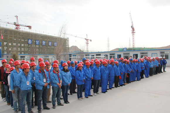 下午四點多,滿載新職工的大巴車終于到了目的地。五個多小時的車程,鄉(xiāng)親們絲毫沒有疲倦感。一下車,大家被塔吊林立,熱火朝天的建筑工地所吸引。經(jīng)過短暫的休整,在項目建設(shè)指揮部舉行了熱烈的歡迎儀式。穿戴上甘肅建投的工裝和安全帽,鄉(xiāng)親們的面貌一下發(fā)生了很大的變化。從這一刻開始,他們終于實現(xiàn)了當(dāng)工人的愿望;也從這一刻開始,他們成為甘肅建投工人當(dāng)中的一份子;從這里開始,他們將展現(xiàn)才華,通向脫貧致富的大道。
