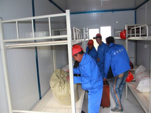 為了迎接遠到而來的新職工,白銀保障房項目部專門準(zhǔn)備生活區(qū):兩排嶄新的彩板房,共十八間寬敞明亮的房間,可以供160人住宿。生活區(qū)內(nèi),食堂,衛(wèi)生間一應(yīng)俱全。面、清油、鍋、爐子、醬油、醋、調(diào)料……,手上的清單面面俱到??紤]到務(wù)工人員來自不同民族,項目部特意認(rèn)真準(zhǔn)備了清真食品……