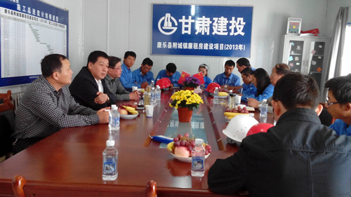 近日,公司董事長李鎖林及黨委書記張國虎一行到二公司康樂縣保障房項目建設(shè)現(xiàn)場,詳細詢問建設(shè)情況,并召開現(xiàn)場管理人員會議。
