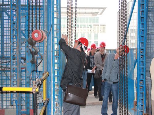 9月26日,來自全省14個(gè)地州市的建筑精英、工程質(zhì)量監(jiān)管者走進(jìn)甘肅建投六建集團(tuán)酒鋼大廈1號(hào)綜合樓項(xiàng)目和甘肅建投七建集團(tuán)綜合樓項(xiàng)目建設(shè)工地,實(shí)地觀摩交流。甘肅建投在安全質(zhì)量管理、新技術(shù)應(yīng)用、文明綠色施工等方面取得的成效受到觀摩人員的稱贊。特別是智能升降平臺(tái)在工程上的應(yīng)用,令與會(huì)者耳目一新,并給予了很高的評(píng)價(jià)。