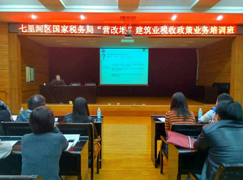 11月25日,由甘肅建投建設(shè)有限公司與蘭州七里河區(qū)國稅局共同舉辦的“營改增”建筑業(yè)稅收政策業(yè)務(wù)培訓(xùn)班在蘭順利開班,七里河區(qū)國稅局局長郭衛(wèi)濤參加開班儀式并致辭。七里河區(qū)60多家建筑行業(yè)“營改增”納稅人參與了培訓(xùn)。