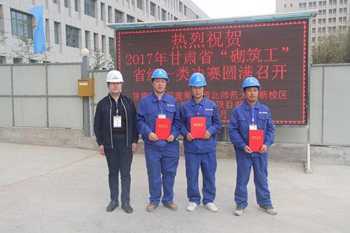5月17日,甘肅省“砌筑工”省級一類比賽在四建集團西北師范大學新校區(qū)宿舍樓項目部圓滿落幕,經(jīng)過兩天的激烈角逐,建設公司代表隊的三名參賽隊員獲得2項三等獎和1項優(yōu)秀獎。