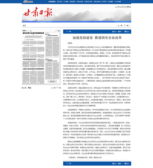 甘肅日報:加強黨的建設(shè) 推進(jìn)國有企業(yè)改革
